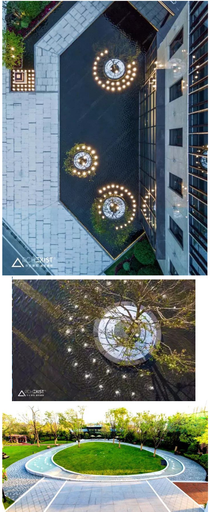 另外一種視覺享受,它是水中的種植池,有樹有草有石,一圈外圍隨型而置的燈光,好似珍珠散落。