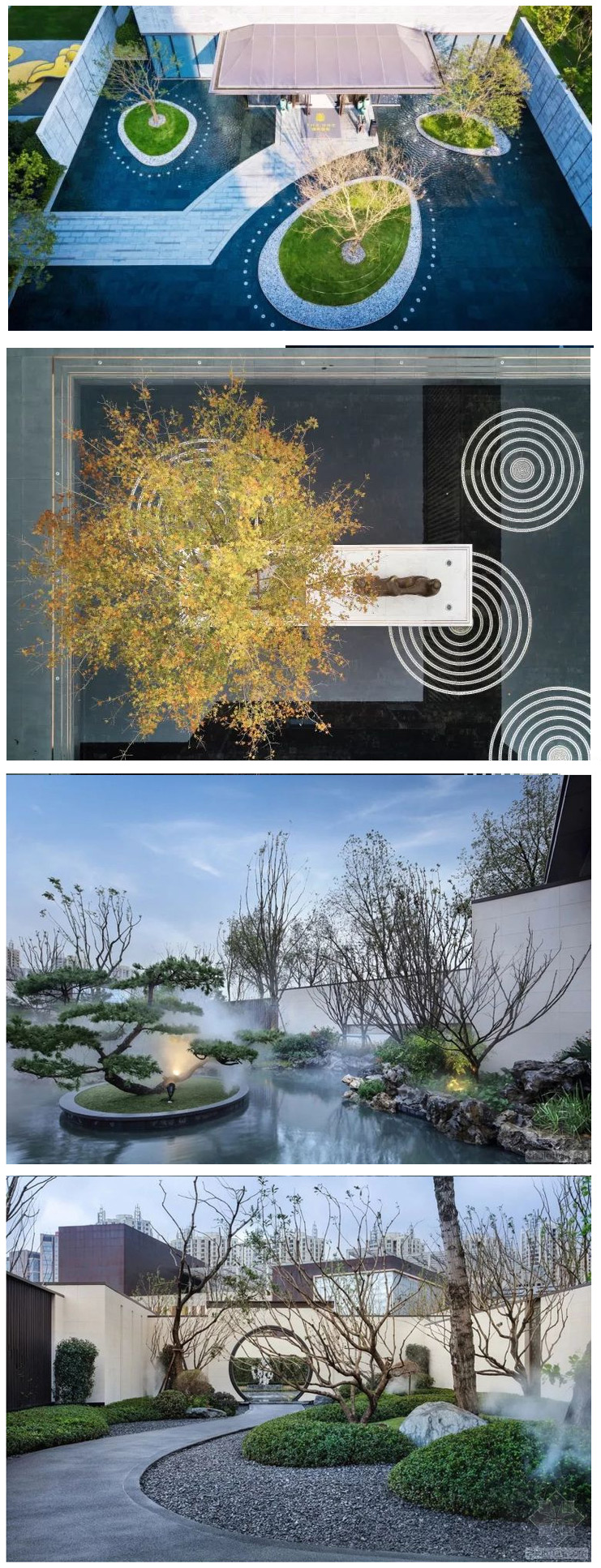 樹池承擔(dān)著保護植物的功能,也可以變成一種視覺的焦點。它不但能作為單獨的造景出現(xiàn),也能與坐凳、水體、鋪裝等相互結(jié)合形成特色景觀。設(shè)計巧妙的樹池起著塑造園林景觀特色、彰顯環(huán)境氛圍的重要作用。盛行于新中式樹池設(shè)計,雖有似曾相似,但又給人一種更具現(xiàn)代感的畫面,極具構(gòu)成感。